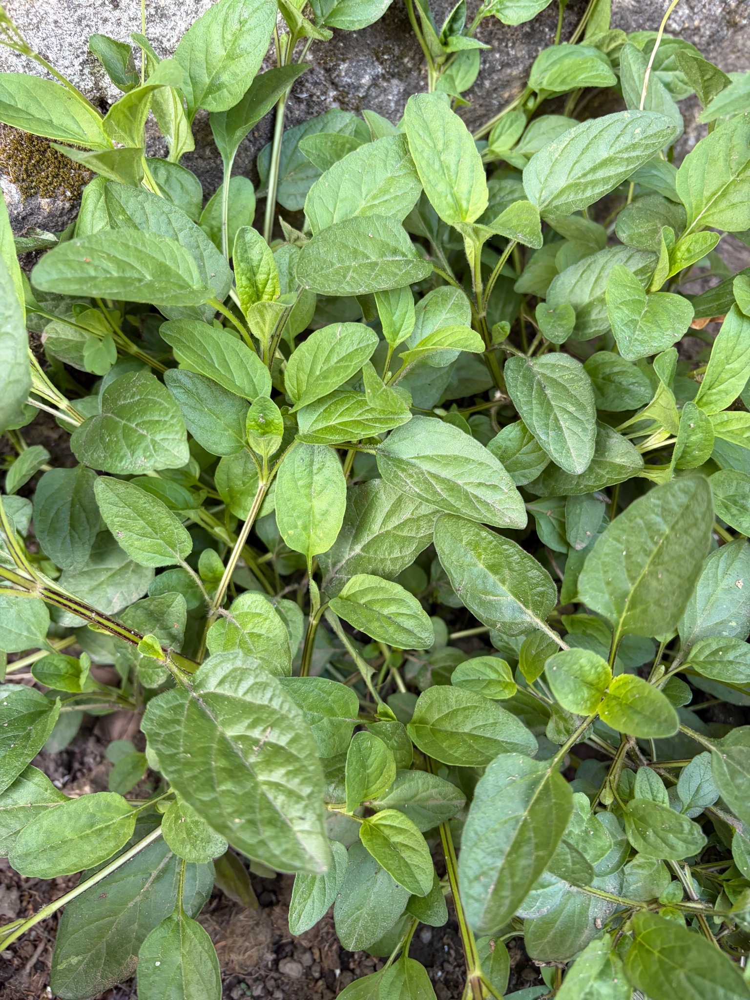A perennial herb known for its aromatic, small, oval, grayish-green leaves and square stems. It grows in dense clumps or as a low-spreading groundcover.