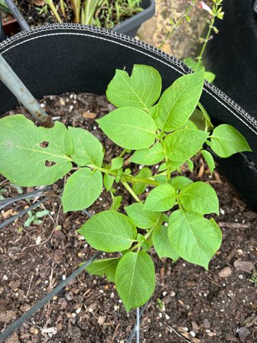 Plant in well-draining, loose soil with full sun exposure. Water regularly to keep the soil consistently moist but not waterlogged. As the plant grows, 'hill' the soil around the base of the stems to protect developing tubers from sunlight.