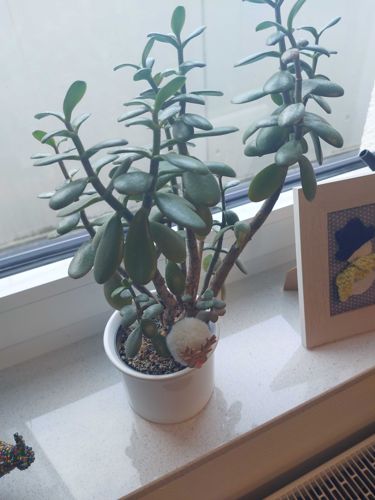 A popular succulent with thick, woody stems and fleshy, oval-shaped green leaves that may develop a red tinge at the edges when exposed to high sunlight.