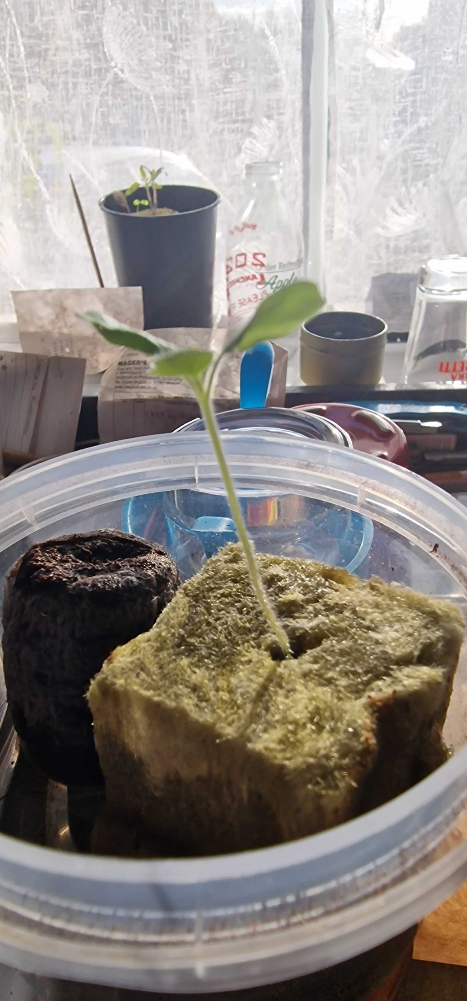 Keep the rockwool or soil consistently damp. If the medium feels light or dry to the touch, add water. Do not let seedlings wilt.