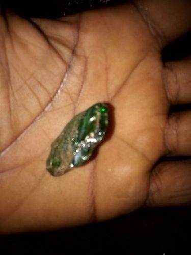The image provided is extremely blurry and low-resolution, making it impossible to identify the subject as a specific plant. It appears to be a small, shiny, dark green object being held in a hand, which could be a leaf fragment, a seed, or even a piece of non-organic material like glass or plastic.