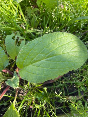 A biennial or short-lived perennial herbaceous plant known for its large, wrinkled, ovate leaves that grow in a basal rosette during the first year, followed by tall spikes of tubular, bell-shaped flowers.